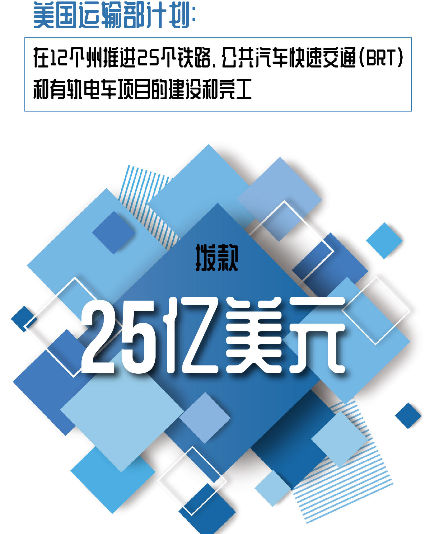 美国运输部长皮特·布蒂吉格最近宣布,建议拨款25亿美元,在12个州推进25个铁路、公共汽车快速交通(BRT)和有轨电车项目的建设和完工。FTA表示,这些项目通过联邦交通管理局(FTA)资本投资赠款(CIG)计划获得竞争性资金,将创造数百个与建筑和运营相关的就业机会,并帮助社区扩大交通选择,改善居民的出行和流动性。