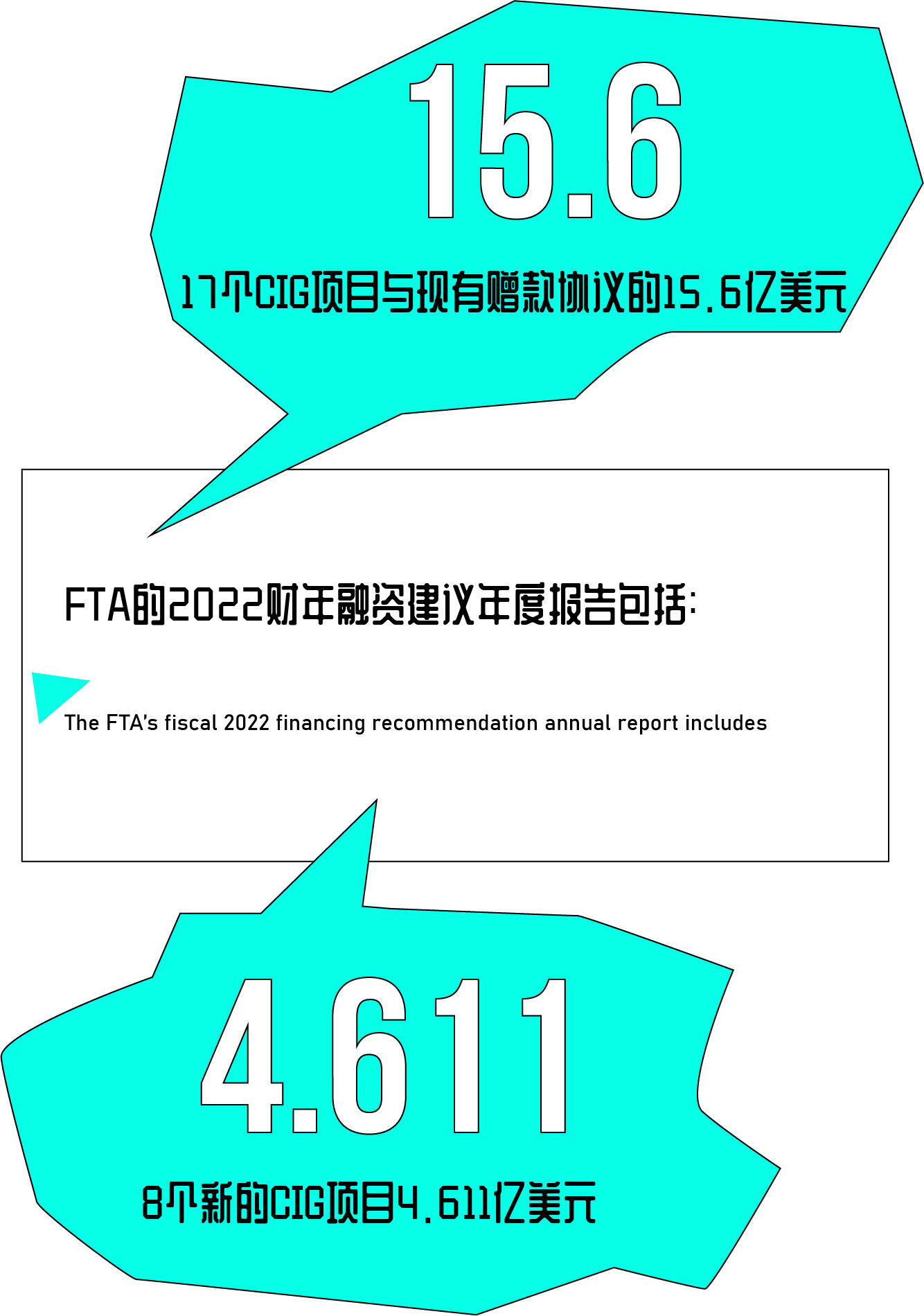 FTA的2022财年融资建议年度报告包括:17个CIG项目与现有赠款协议的15.6亿美元,以及8个新的CIG项目4.611亿美元,预计在2022财年即可获得赠款。建议为其他CIG和加快项目交付试点项目额外提供4.272亿美元,这些项目可能在2022财年内准备就绪供资。
