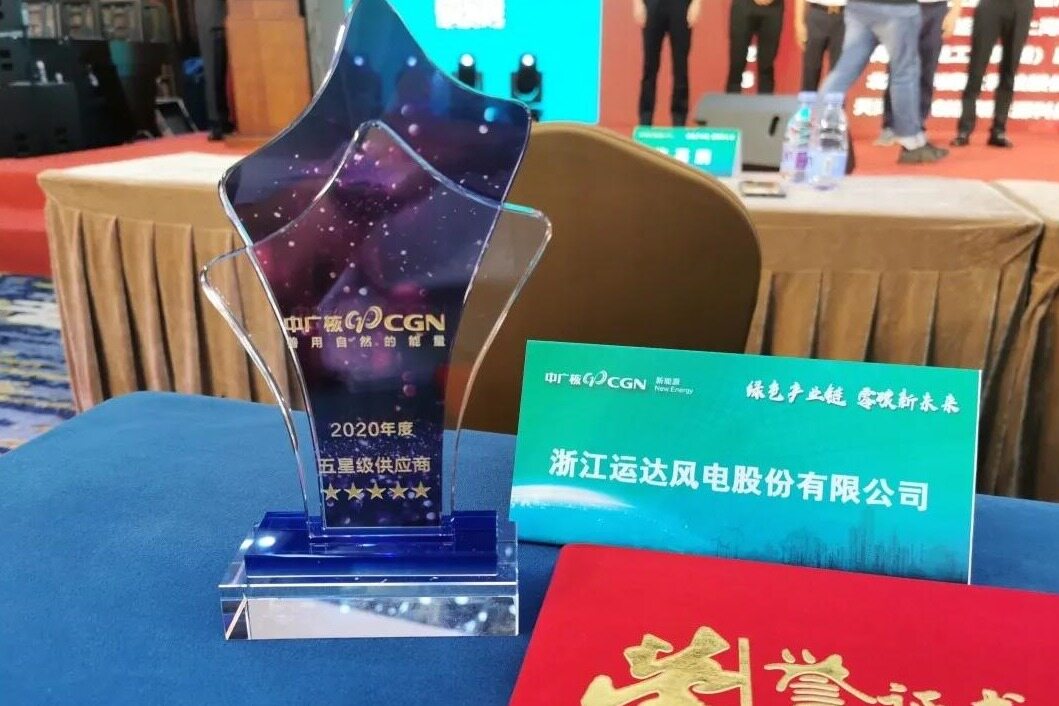 في 2 يونيو ، عقدت شركة الصين العامة للطاقة النووية الجديدة القابضة المحدودة (المشار إليها فيما يلي باسم "الطاقة النووية العامة الصينية للطاقة الجديدة") مؤتمر الموردين لعام 2021 تحت شعار "سلسلة الصناعة الخضراء لمستقبل جديد خالٍ من الكربون" ، تشجيانغ شركة يوندا لطاقة الرياح المحدودة (المسماة أدناه "أسهم يوندا") تمت دعوة سكرتير الحزب ورئيس مجلس الإدارة والمدير العام قاو لينغ لحضور الاجتماع. في الاجتماع ، مُنحت Yunda الجهاز الكامل الوحيد "2020 المزود بخمس نجوم" لشركة CGN New Energy. وهذا تكريم آخر بعد حصولها على المورد الوحيد من فئة الخمس نجوم لـ CGN New Energy في عام 2019.