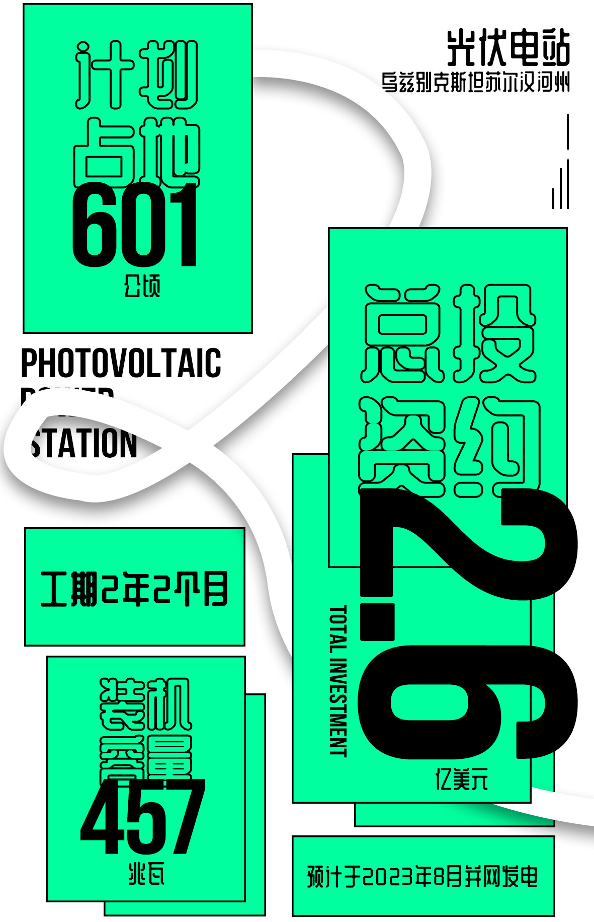 该项目为乌与亚行计划合作实施的系列项目之一,由阿联酋马斯达尔(Masdar)公司以DBFOOM模式开发建设,总投资2.6亿美元,计划占地601公顷,装机容量457兆瓦,配套建设一座220千瓦变电站和52公里输电线路,连接至苏尔洪变电站,工期2年2个月,预计于2023年8月并网发电,投产运营后乌方将按1.8美分/千瓦时的价格回购。