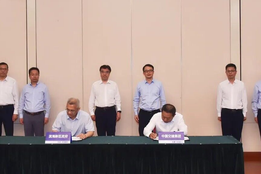 6月1日,中交集团与天津市滨海新区在天津签署战略合作协议。中交集团党委副书记、总经理王海怀与天津市委常委、滨海新区区委书记连茂君出席仪式并见证签约。