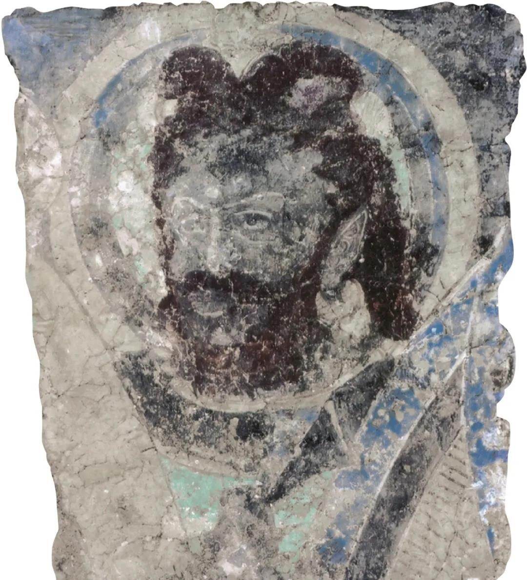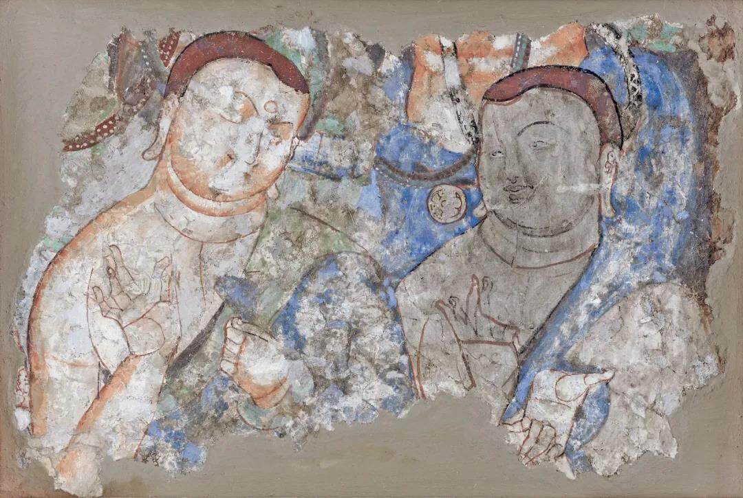 天人和比丘(因缘佛传图局部)第186窟主室右侧壁 德国柏林亚洲艺术博物馆藏