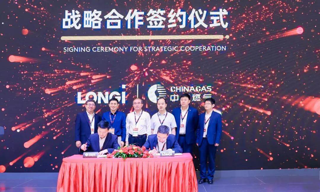 2021年6月4日,中国燃气控股有限公司(下称“中国燃气”)与隆基绿能科技股份有限公司(下称“隆基股份”)在上海签署战略合作协议。中国燃气集团董事局主席、总裁刘明辉,隆基股份董事长钟宝申出席签约仪式。