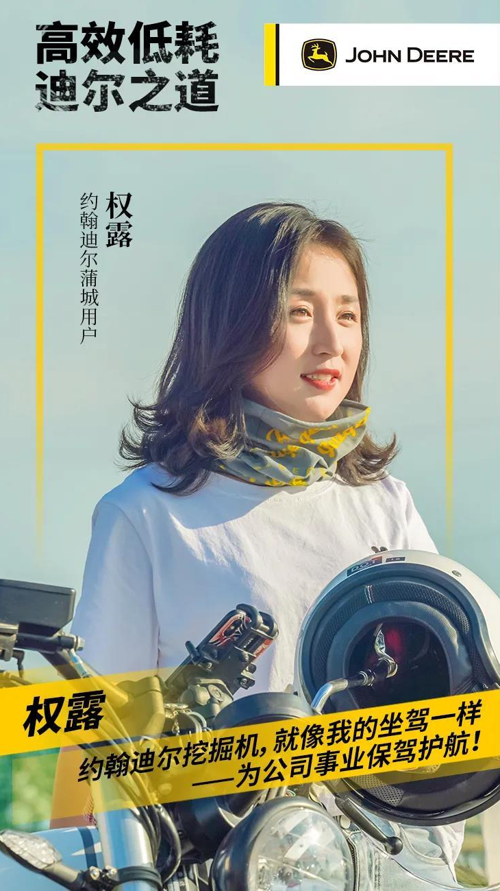 “我叫权露,是一个从事工程机械行业的女骑士,迪尔挖机就像是我的座驾一样……”