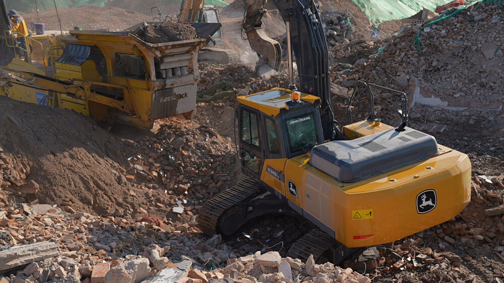 约翰迪尔挖掘机让建筑垃圾变废为宝