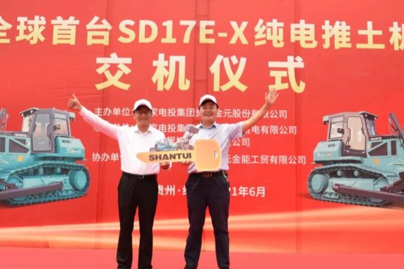 6月8日,全球首台SD17E-X纯电动推土机交机仪式在国家电投贵州金元某电厂内隆重举行。山推股份总经理张民、副总经理刘春朝、国电投相关领导及人员出席交机仪式。