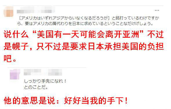 至于如何增强自卫队能力,奥斯林也给出了答案:日本防卫费只占GDP的1%,应当能够负担更多,承担更大的“责任”。他还意味深长地表示,也许美国有一天会离开亚洲,那时便只剩下中日了。然而,这番“吓唬”自然无法让日本网友买账。