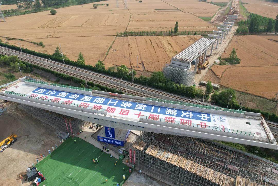 京沪铁路是中国铁路网最重要的南北大动脉之一,同时也是中国最繁忙的铁路干线之一,平均每天约有130趟列车经过。中铁十四局项目负责人宿胜介绍,为了确保铁路线路的安全,充分保障过往旅客生命健康,桥梁施工采用了“先建后转”施工工艺,然后通过桥梁转体的方式跨越繁忙的京沪铁路。