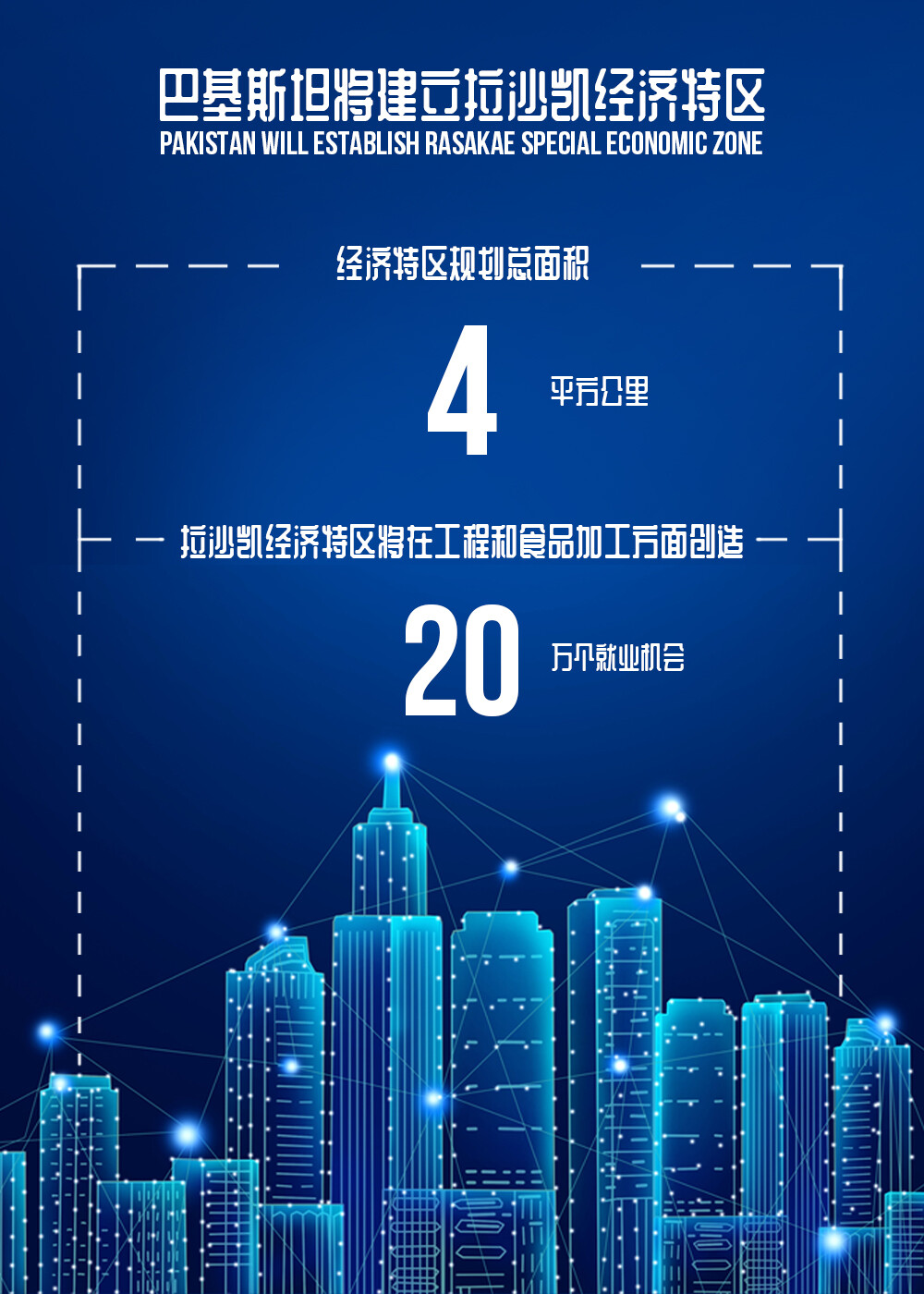 经济特区规划总面积4平方公里,分三期建设。巴基斯坦既具有一定的资源优势,又拥有不断增长的国内市场需求,经济特区旨在吸引机械、设备和家用电器制造、食品加工、纺织和皮革加工、家居建材、仓储和物流等配套服务业的投资者。