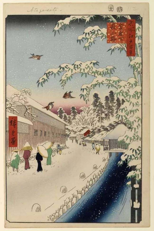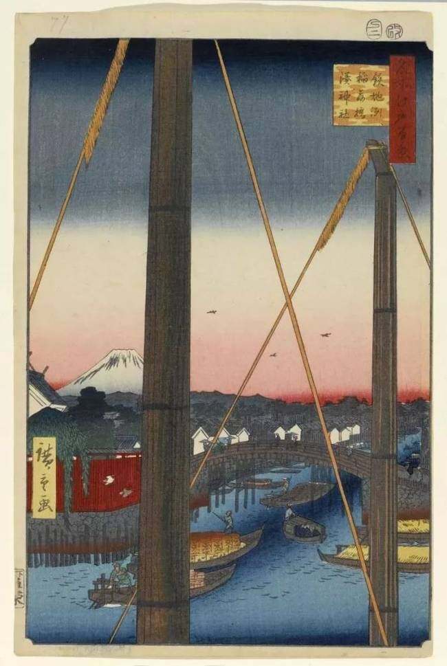 作为日本的“浮世绘三杰”之一,歌川广重是有史以来最受欢迎的浮世绘画家之一。出名这件事有利有弊,弊端之一就是作品产量太高,导致水平波动,良莠不齐。但是,他的杰作,大家还是公认的,比如他在1856年至1858年间创作的《名所江户百景》。(注:歌川广重去世十年后,江户才改名东京)