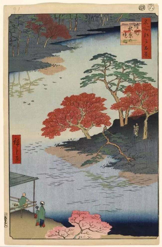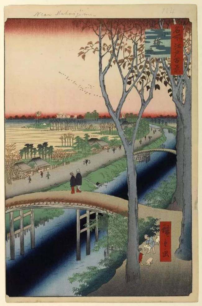 《名所江户百景》分成春夏秋冬四个部分,朝阳晚霞,天晴雨季,四季之景俱全,更包含诸多社会百态。只要你细细看画,都能轻易看到。