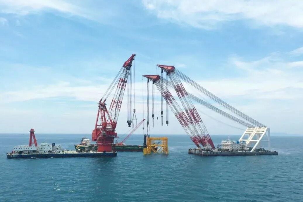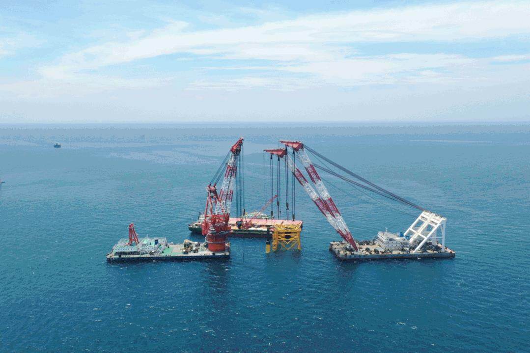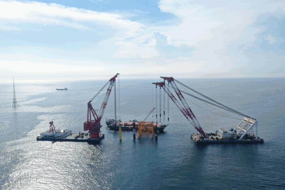 该项目施工水域最深达45米,是目前世界最大的吸力桩钢结构基础海上风电项目,也是导管架单体重量最重高度最高的海上风电项目。