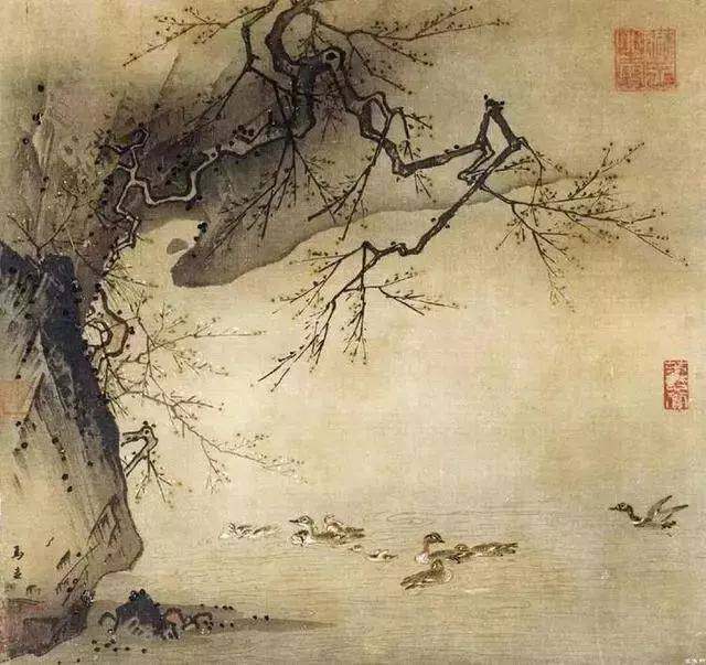 小品作品中,最具有代表性的是宋人小品画,是宋代绘画艺术的缩影。这些小品,有些原先可能是宫殿中配置在屏风上的装饰画,或者是画在纨扇上的装饰画,因其艺术品质非常高,被人收集在一起装裱起来。代表如南宋四大家之一马远的《梅石溪凫图》。