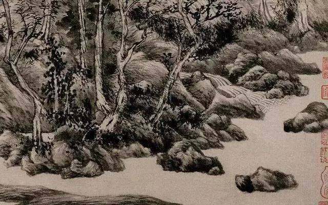 “五色”是哪五色?说法不一,大多是说:焦、浓、重、淡、清;也有的认为应该说成:浓、淡、干、湿、黑;也有加“白”,合称“六彩”的。实际上指的就是墨色运用上的丰富变化。理解起来不用太机械,不要认为墨和水只能调出五种变化,其实变化应该更多。代表作如元代王蒙的《青卞隐居图》。
