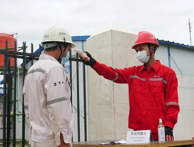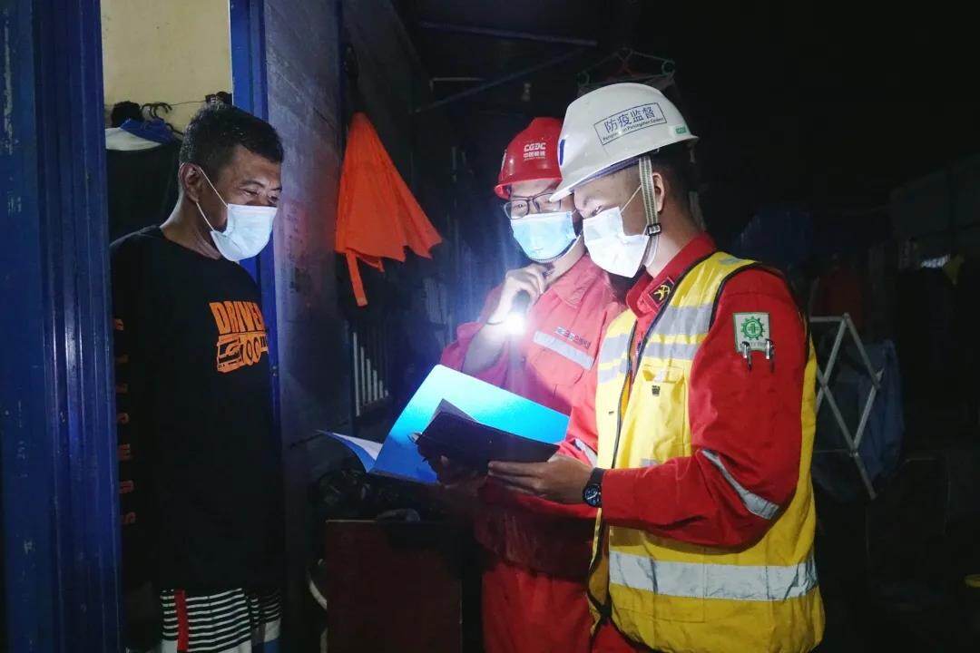 2020年初,疫情暴发,ADI主动请缨加入项目防疫小组,成了一名兼职防疫员。工作之余,在生活区帮助监测体温、消毒消杀,进行夜间巡查。