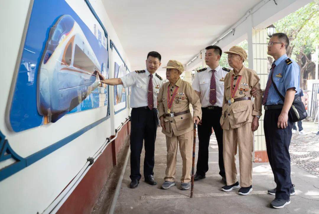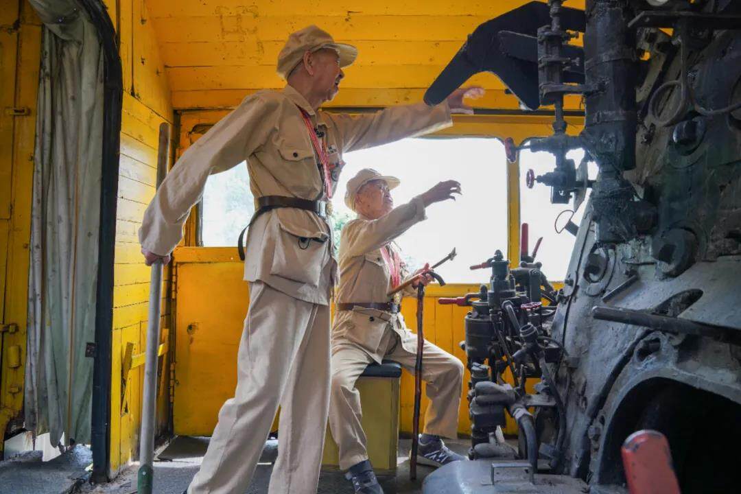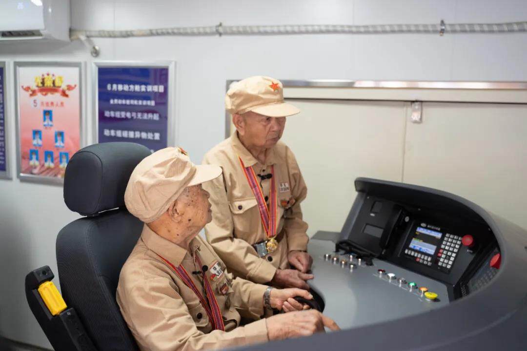 当天,他们受邀回到娘家柳州机务段参观,感受中国铁路的快速发展。在老蒸汽机车上,两位老人重温当年驾驶机车驰骋战场的岁月。在熟悉的位置上,任忠德“驾驶”,汪九亮“添煤”,再现当年两人相互“配合”的场景,一招一式、有模有样。