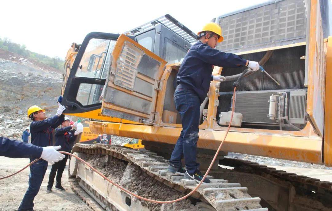 柳工售后服务工程师正在给设备进行维护保养