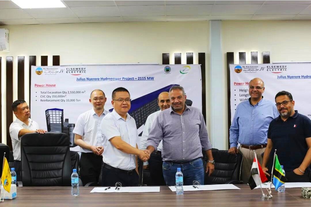 在即将迎来建党100周年之际,东方电气集团国际合作有限公司与埃及联营体公司在坦桑尼亚项目工地,成功签订坦桑尼亚朱利诺水电站水轮发电机组安装合同。埃及爱思瓦迪公司首席执行官赫沙姆,东方国际总经理陈强,以及双方项目团队在项目工地现场参加了签约仪式。