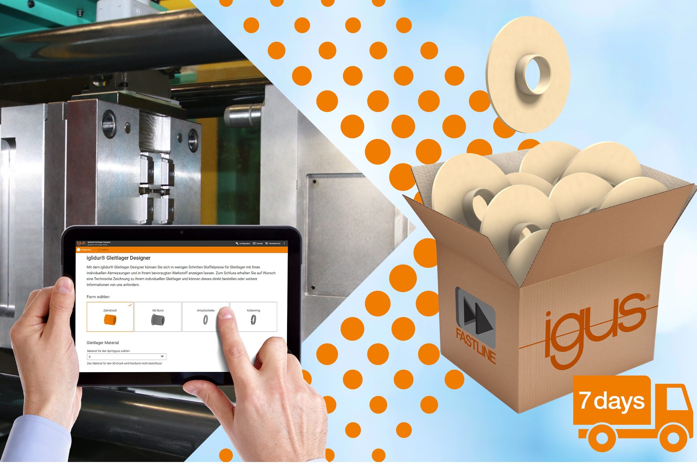 某个产品的市场需求高涨的时候,也是更需要制造商及其供应商的时候。特殊形状的滑动轴承等定制部件,必须快速交付,且不能有任何差错。但使用注塑成型技术生产特殊零件时,生产周期长达数周是非常普遍的。针对这一情况,塑料专家易格斯凭借其模具制造部不断精进的技术,专门为客户推出了FastLine服务。指定尺寸和材料的免润滑工程塑料滑动轴承只需几天即可交付,单价也很实惠。
