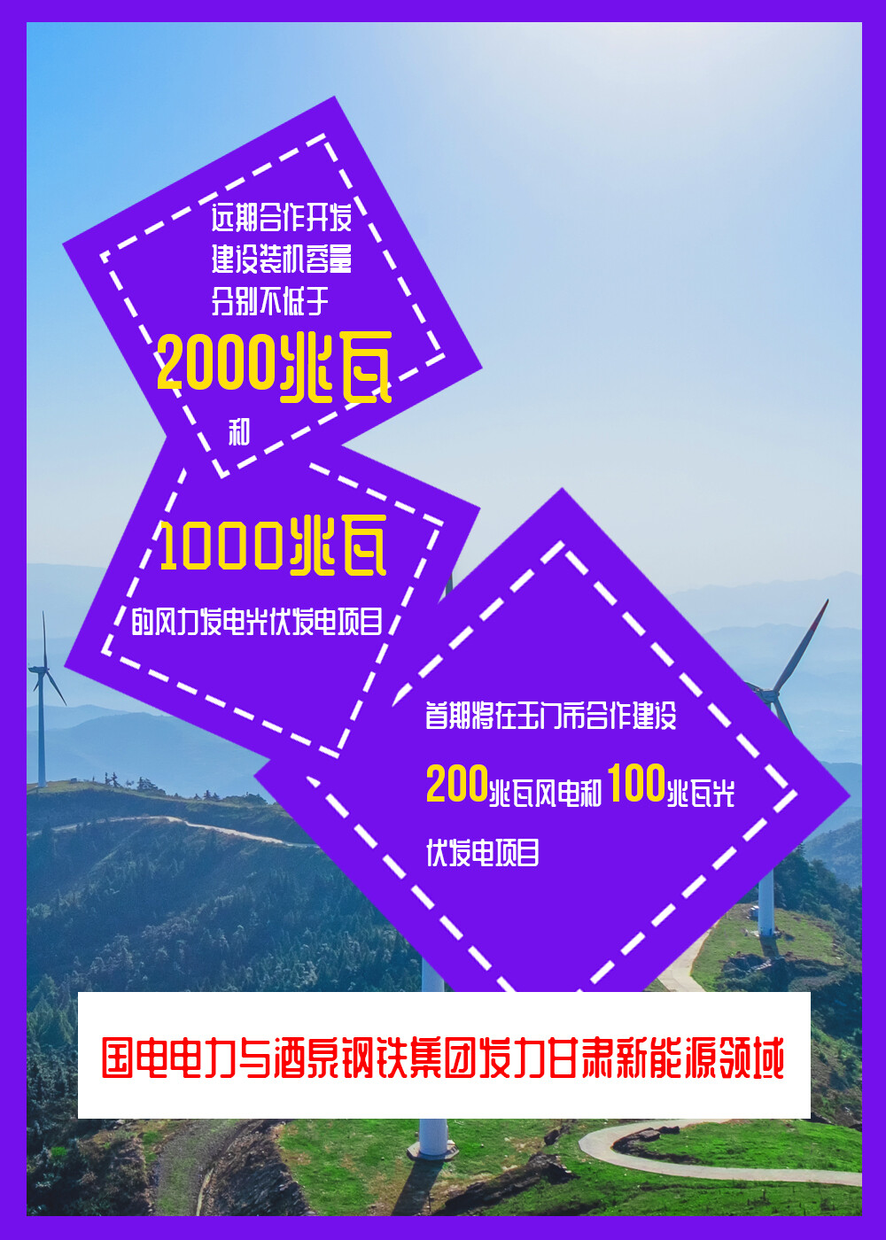 根据协议,国电电力与酒钢集团将充分利用嘉酒地区新能源资源富集优势,分批、分期开发嘉酒地区风电、太阳能等可再生绿色能源。远期合作开发建设装机容量分别不低于2000兆瓦和1000兆瓦的风力发电、光伏发电项目。