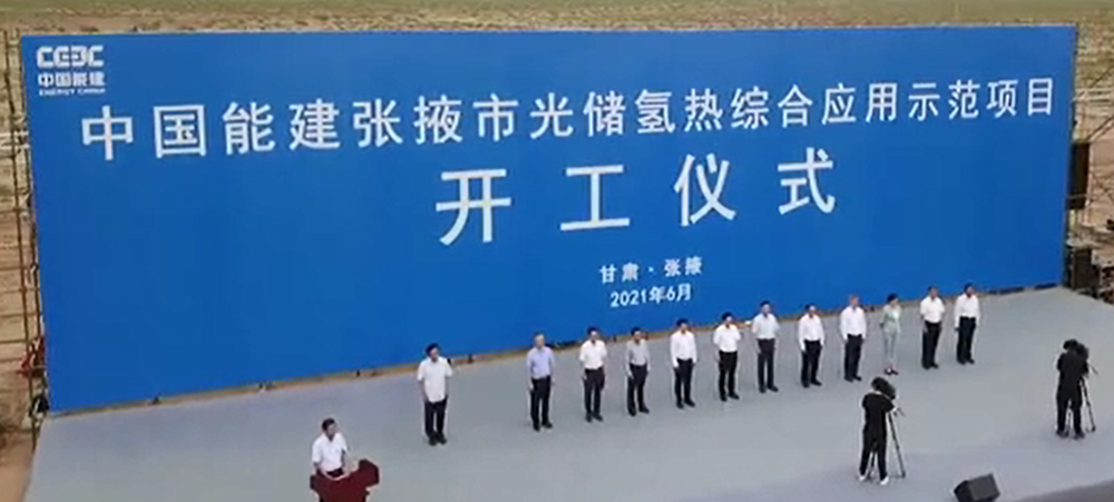 2021年6月22日,中国能建投资建设的甘肃省张掖市光储氢热综合应用示范项目正式开工。