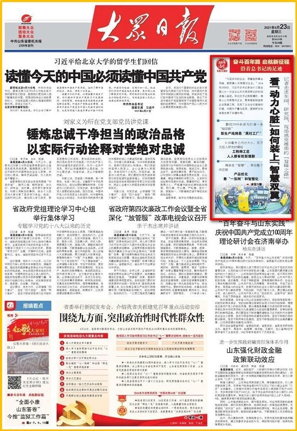 “凡是成功的企业,要攀登到事业顶峰,都要靠心无旁骛攻主业。”2018年3月8日,习近平总书记参加十三届全国人大一次会议山东代表团审议时的话语,潍柴控股集团有限公司董事长谭旭光铭记于心。“潍柴人牢记总书记殷殷嘱托,心无旁骛攻主业,聚焦智能制造等企业强基工程,实现了企业全价值链的打通,对提升产量与品质、提高研发效率等发挥了关键作用。”谭旭光说。