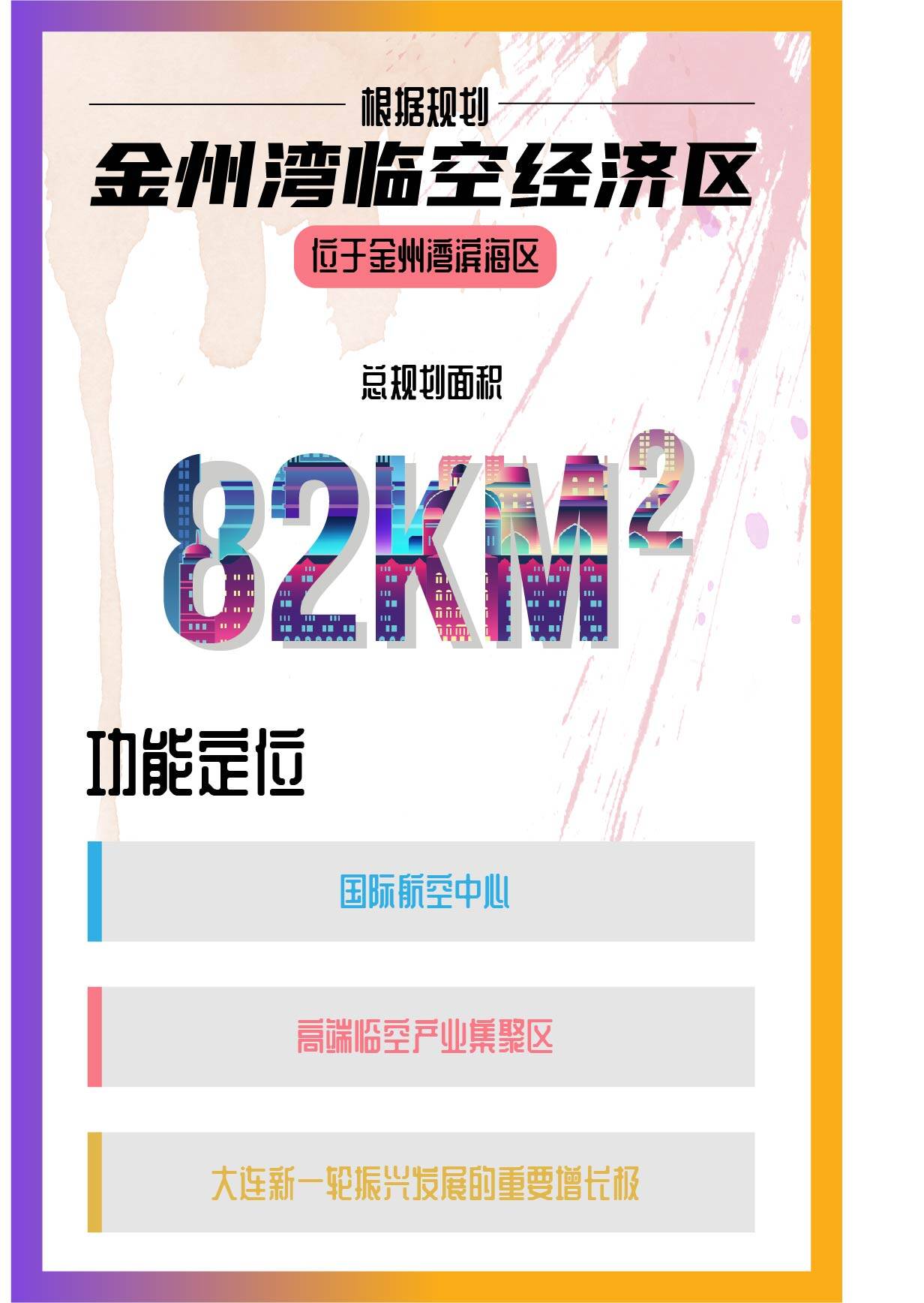 谋定而后动。根据规划,金州湾临空经济区位于金州湾滨海区,总规划面积82平方公里。功能定位为“国际航空中心、高端临空产业集聚区、大连新一轮振兴发展的重要增长极”。在《大连2049城市愿景规划》定位甘井子区东部为“枢纽新城”;在《大连市国民经济和社会发展第十四个五年规划和二〇三五年远景目标的建议》中明确在该园区建设“高端会展中心”和“会展之城”。