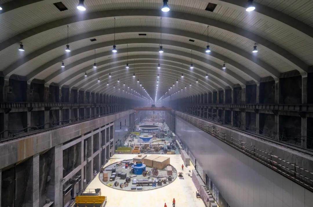 The space of the deep V-shaped canyon is limited. Therefore, the equipment for the entire water diversion and power generation system of Baihetan Hydropower Station is placed in specially excavated underground caverns in the mountains on both sides. The underground powerhouses on both sides of the strait are installed with 8 million-kilowatt hydroelectric generating units. Each one is 438 meters in length, with a top arch span of more than 34 meters and a height of 88.7 meters. It is currently the largest underground powerhouse in the world. In addition, there are also a total of 8 cylindrical tail water surge chambers on the left and right banks with a diameter of 42 to 48 meters, which are also the largest surge surge chambers built in the world.