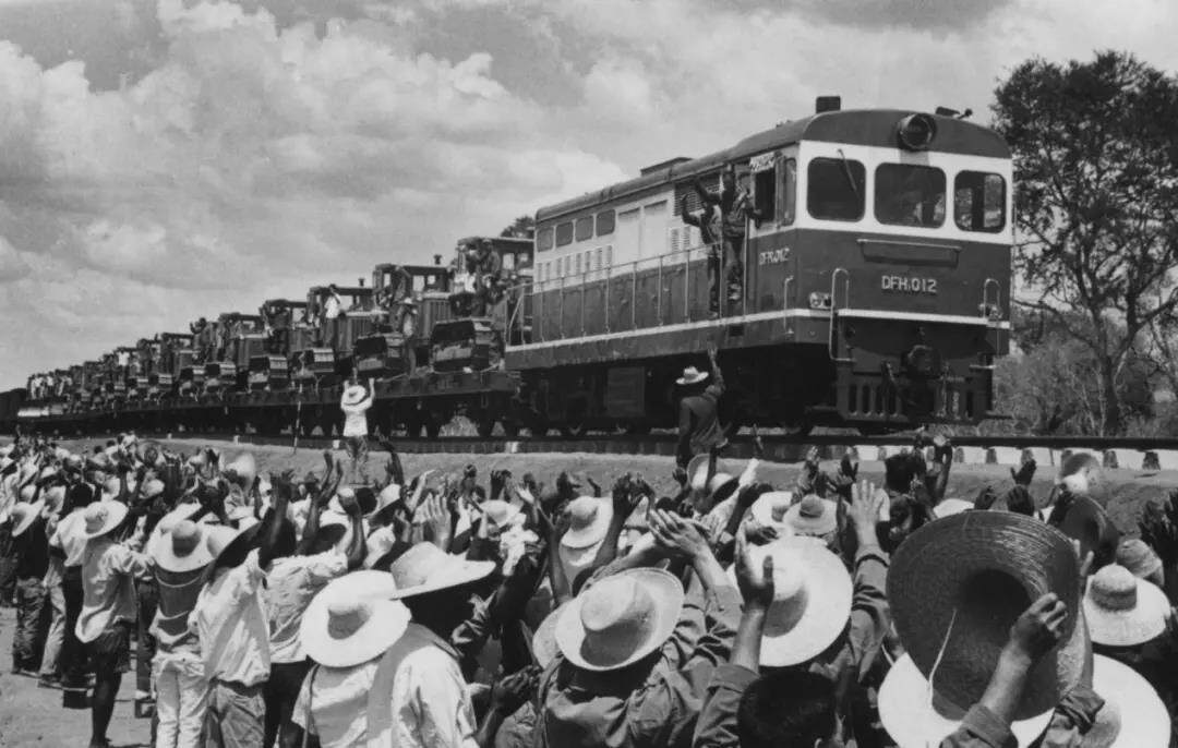 “现在,在这里,在我们面前,梦想实现了!”1975年坦赞铁路全面建成并试运营庆祝大会上,卡翁达阁下如是说。现场人潮涌动,共同见证这一历史时刻。