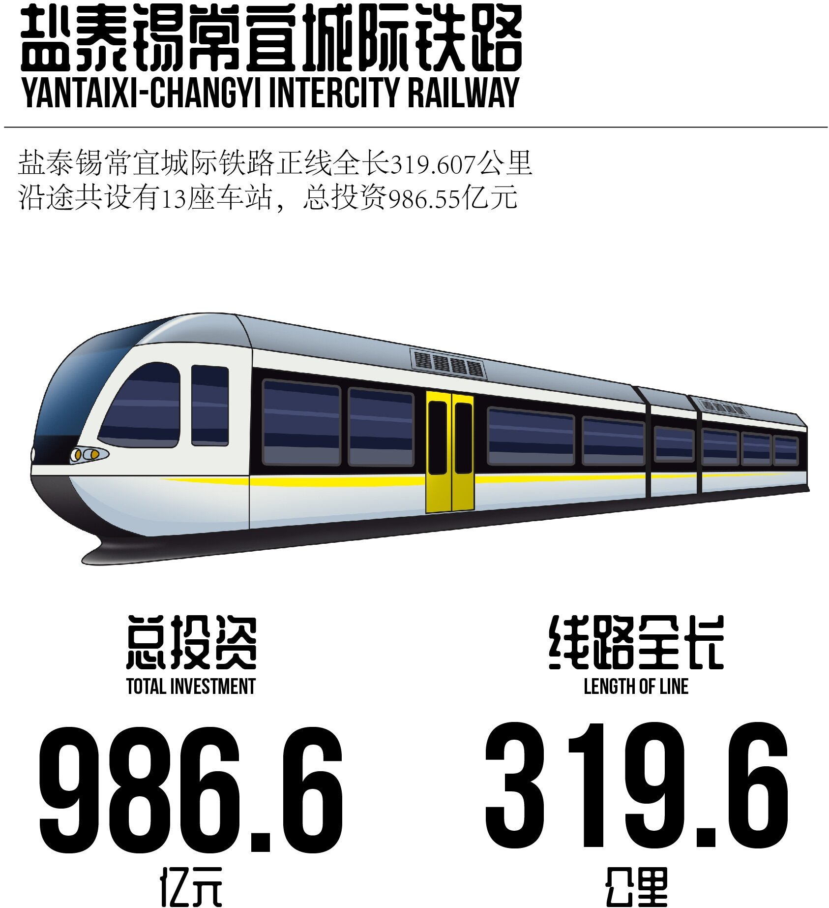 盐泰锡常宜城际铁路正线全长319.607公里,沿途共设有13座车站,总投资986.55亿元,近千亿的一个大项目,正好就位于江苏的中轴线上,这条铁路起始从江苏的盐城,一路向南,直到宜兴为止,沿途经过泰州、常州等多市,形成了一条连接苏北、苏中、苏南的快速客运通道,这对于加强江苏省内一体化发展具有非常重要的意义。