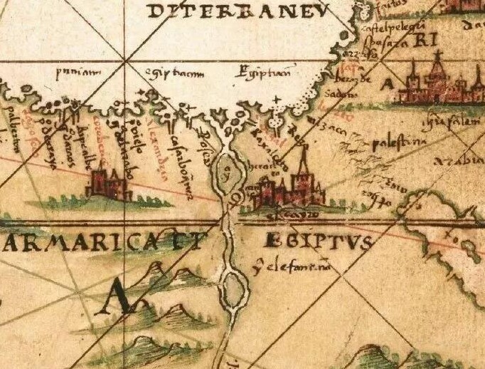 从这幅13世纪的古代波特兰地图上看,当时的尼罗河口三角洲还不存在,尼罗河入海口还是一个海湾。