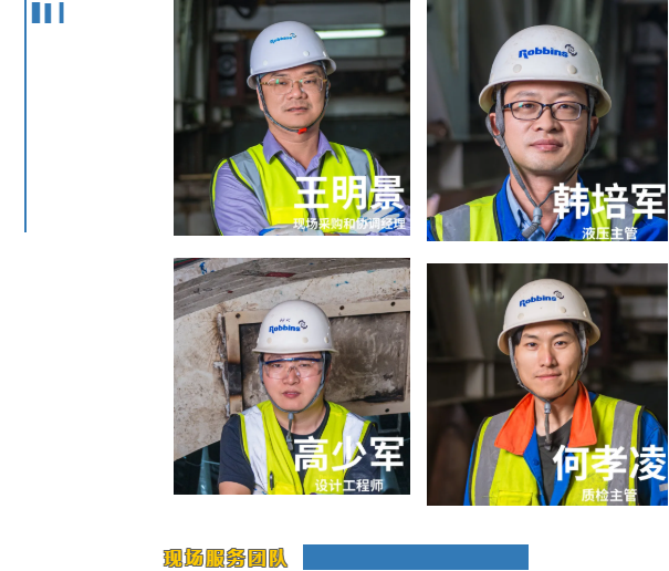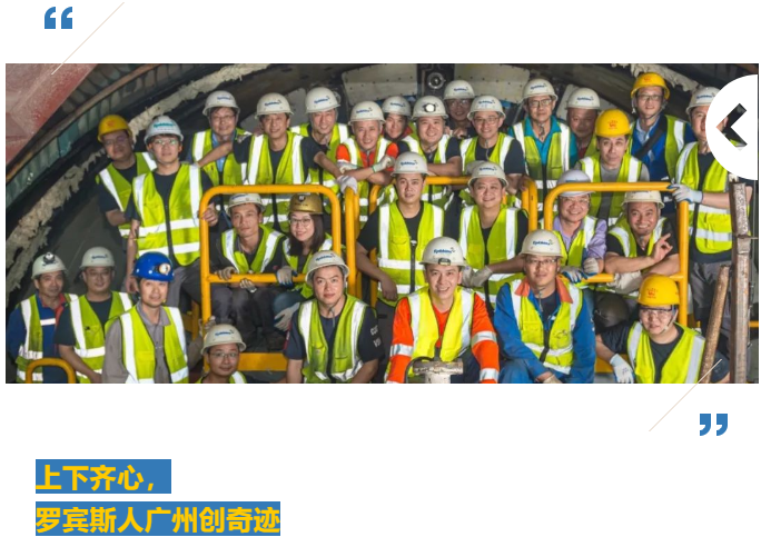 为了创造广州项目的这个组装奇迹,现场服务团队所有成员即便遇到疫情后的第一个春节,也没有提出休假,而是选择在工地和同事们一起过春节赶进度。面对早上12个小时,晚上12个小时的排班更是任劳任怨。很多同事,每天从早上下洞,就一直在设备上工作,直到晚上半夜才出洞睡觉,中餐和晚餐都在洞里吃。也有几位同事在工地不小心扭伤、摔倒了,都带伤都坚持工作。中国区总经理王鄞也亲自来到现场驻守近1个月,和工地的同事们一起拼搏。为达目标,齐心协力共克艰难,这就是罗宾斯团队凝聚力。