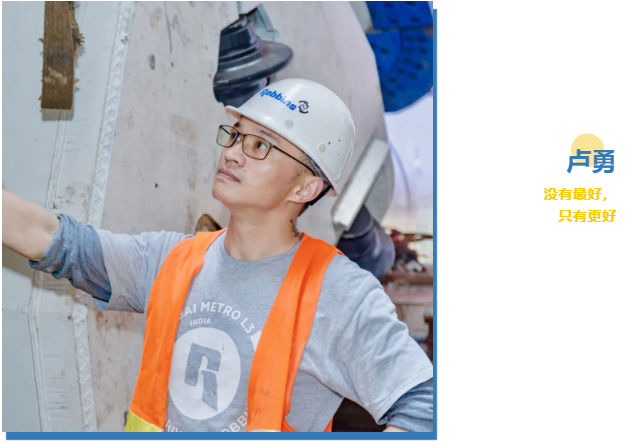 这个胳膊和脖子都绣有纹身,又被大伙评价做事细致,能当大任的铁汉就是卢勇,来自四川绵阳。他是广州项目现场的其中一位机械技术人员。2008年带着6年焊接冷作经验的卢勇加入罗宾斯, 以焊接技工开始他在这里的工作生涯。在2009年至2011年间,前后参与完成重庆马里店,重庆地铁二期和马来西亚项目的刀盘和结构件的焊接任务后,他一丝不苟、认真负责的工作得到工地同事和领导的赞赏。2012年开始在美国总部的工程师带领指导下学习主机驱动总成和螺旋输送机驱动的组装和测试。只会用肢体比划和外国同事沟通的卢勇,也在这个时候赶紧将勤补拙,一边干一边忙里偷闲自学英语。卢勇慢慢掌握了设备组装和测试技术,同时也可以用英文和同事顺利进行交流。后来在总部工程师的辅助下,前后参与组装测试新加坡和莫斯科等设备。2年后卢勇已经独挑大梁带头为国内的项目组装设备了,9年间已经组装测试过二十多台设备的主机驱动。