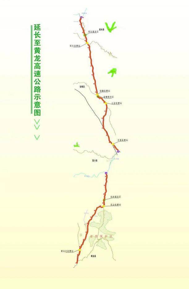 延黄高速公路是G6521榆蓝线的重要组成部分,起于延长县岳口村,接已建成的G2211长延高速,终点位于黄龙县安善村,与已建成的黄龙至蒲城高速公路顺接。延黄高速途经延长、宝塔、宜川、黄龙“三县一区”,全长166.6公里(其中新建里程149.5公里,与青兰高速公路共线段17.1公里),桥隧比为38.3%,概算总投资175.06亿元,采用全封闭、全立交、双向四车道高速公路技术标准,全线共设9个互通、3个服务区、6个匝道收费站。