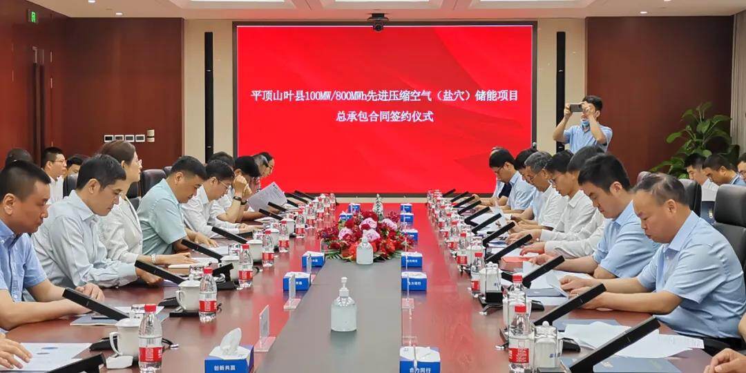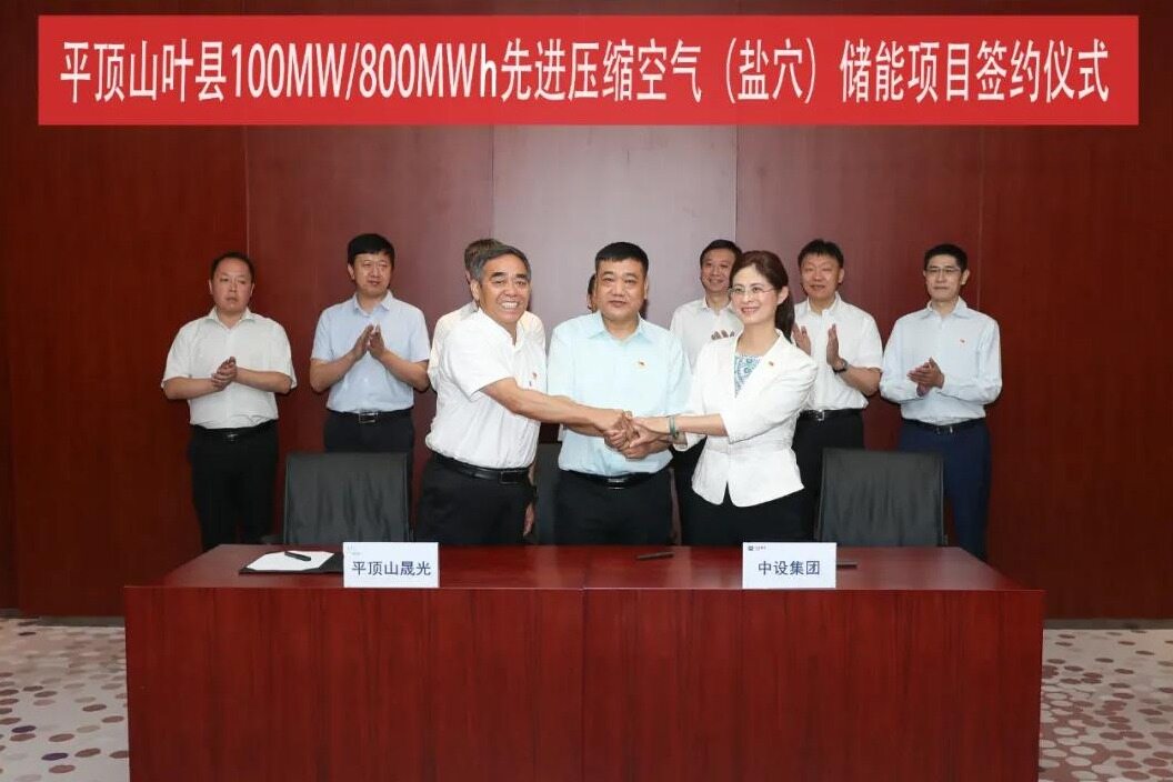في 30 يونيو 2021 ، وقعت شركة Pingdingshan Shengguang Energy Storage Co.، Ltd. و China Mechanical Equipment Engineering Co.، Ltd. عقدًا رسميًا في بكين لبناء أول مخزن طاقة هواء مضغوط متقدم في العالم بقدرة 100 ميجاوات باستخدام تخزين غاز كهف الملح في مقاطعة يي. محطة كهرباء.
