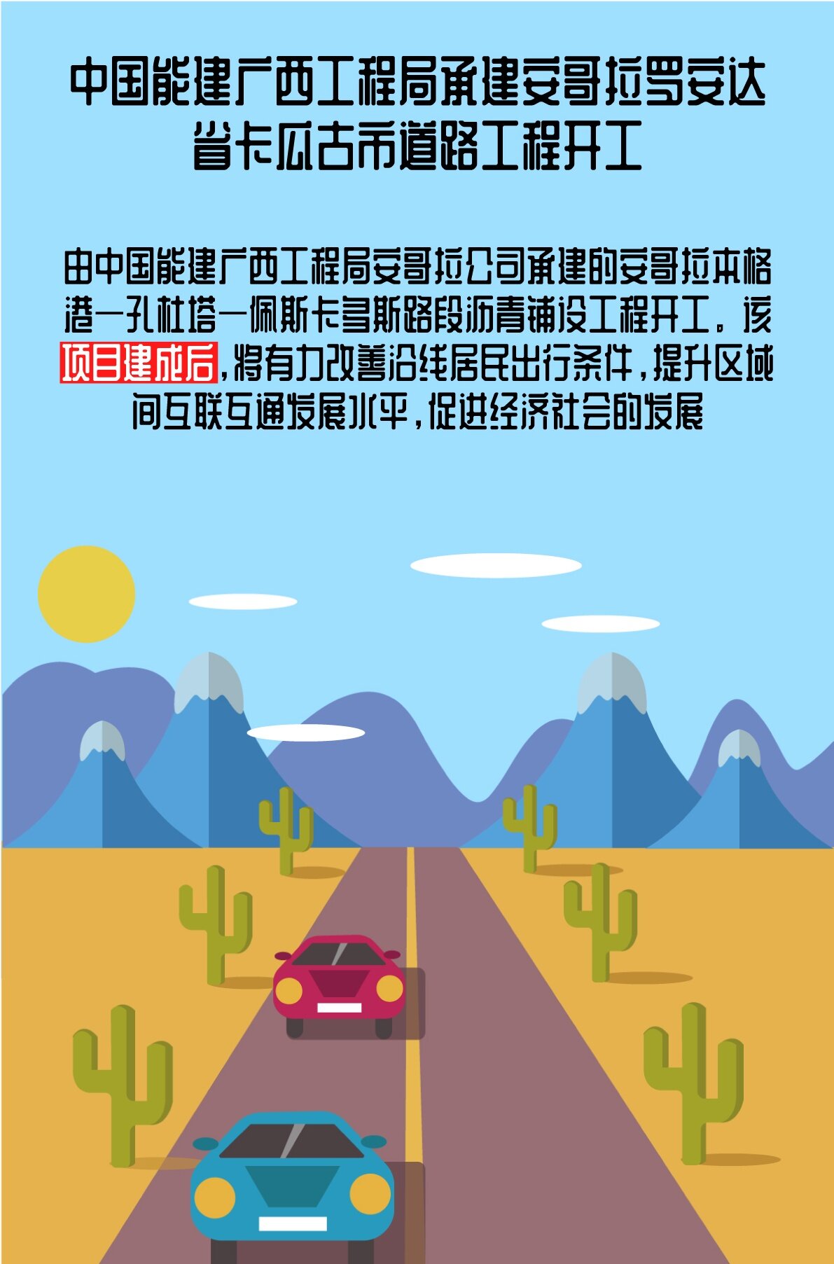 自2005年以来,广西工程局安哥拉公司积极践行一带一路倡议,先后承建了安哥拉罗安达市区沥青道路工程、K.K新城道路工程、维阿纳工业园POLO商业区道路工程、桑比赞加道路工程、奎托市二三级道路修复工程、威拉省道路沥青铺设及升级等十余项市政工程,为加快构建便捷通畅的安哥拉交通体系,促进城镇化建设,共创美好生活注入了强劲动力。(转载请注明见道网 www.seetao.com )见道网工程栏目编辑/邢文涛