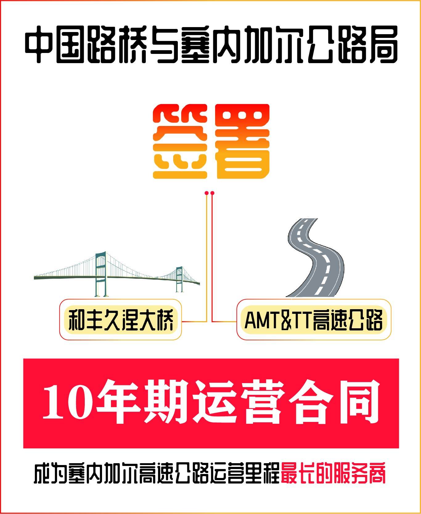 近日,中国路桥与塞内加尔公路局签署AMT&TT高速公路和丰久涅大桥项目10年期运营合同,成为塞内加尔高速公路运营里程最长的服务商。