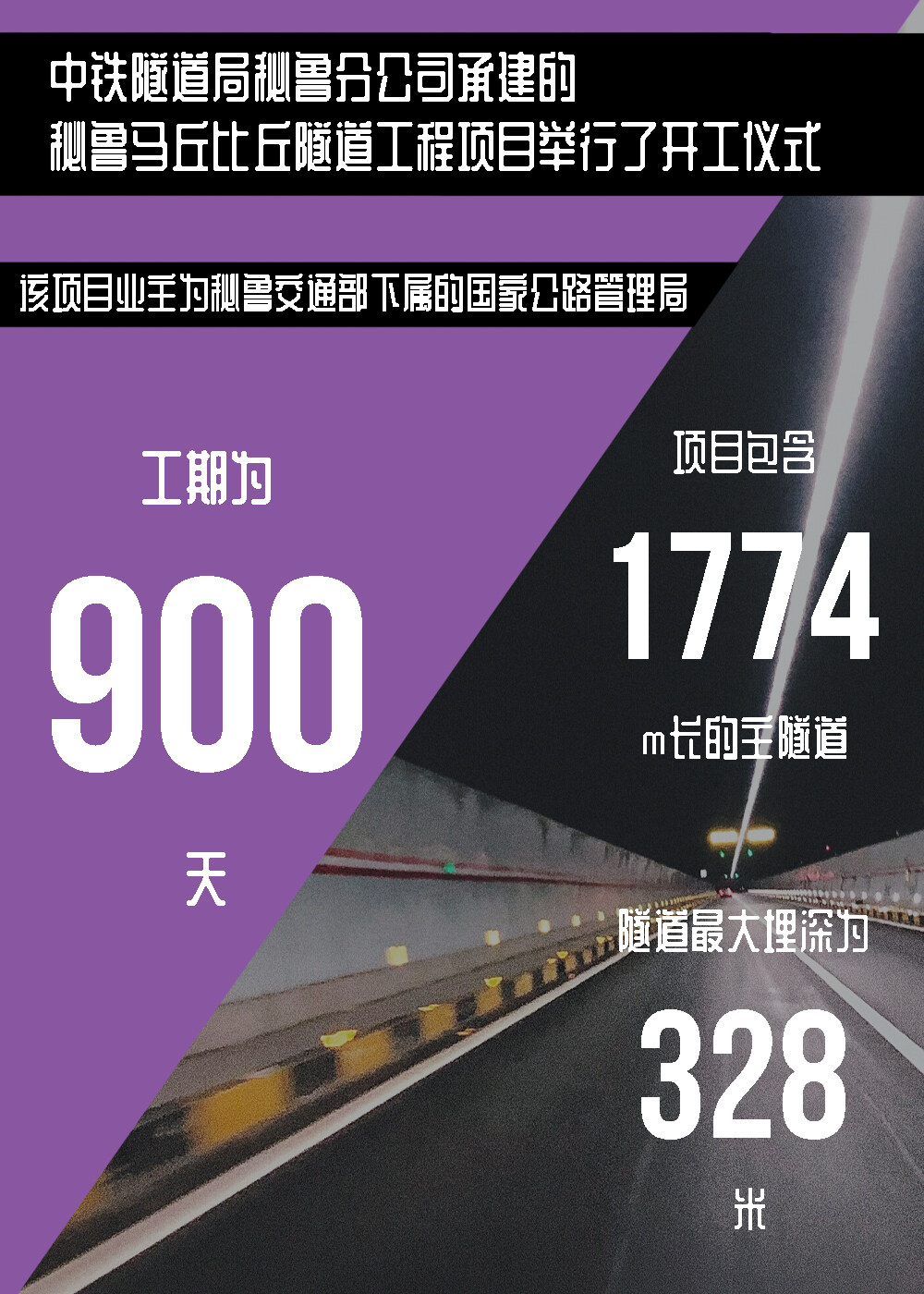近日,由中铁隧道局秘鲁分公司承建的秘鲁马丘比丘隧道工程项目举行了开工仪式,该项目业主为秘鲁交通部下属的国家公路管理局,工期为900天。项目包含1774m长的主隧道和214m长的应急隧道,单洞双车道,隧道最大埋深为328m。