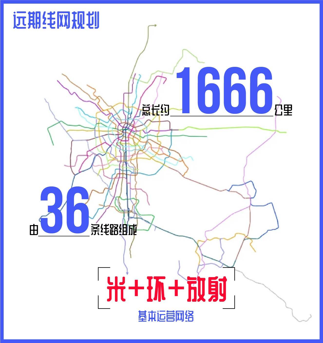2021年版线网规划以“科学规划、精准规划”为指引,充分体现了“轨道交通引领城市发展格局,TOD重塑城市空间形态”的理念,从规划上奠定了城市轨道交通在中心城区公共交通中的主体地位,进而从顶层设计上落实了公园城市建设对城市轨道交通系统的要求。远期线网规划由36条线路组成,总长约1666公里,其中城市轨道交通29条、1389公里,市域铁路7条、277公里。