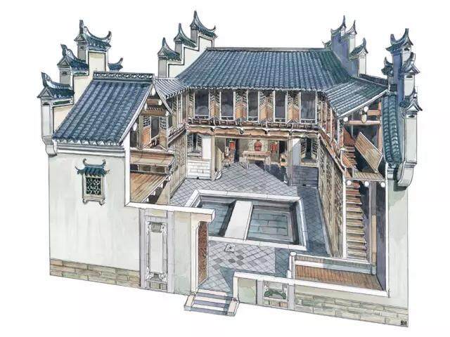 Li Ganlang pays special attention to the construction and design of the building, especially the large wooden structure and space configuration. He went to various places to inspect the ancient buildings, the sketchbook and the camera did not leave, a small three-opening hall, he could draw several pictures and take a hundred photos.