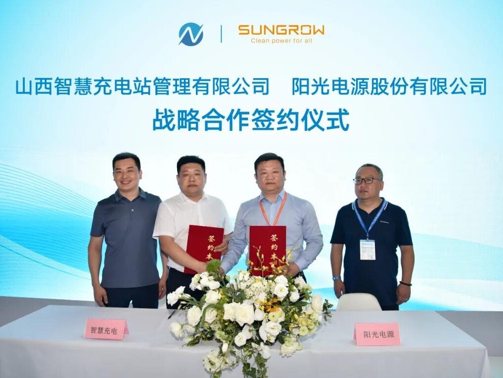 On the morning of July 7, 2021, Sungrow Power and Shanxi Smart Charging Station Management Co., Ltd. held a strategic cooperation agreement on the "New Energy Integrated Optical Storage and Charging Industry Development" in Shanghai, and signed a purchase contract for 1,000 DC charging piles on site.