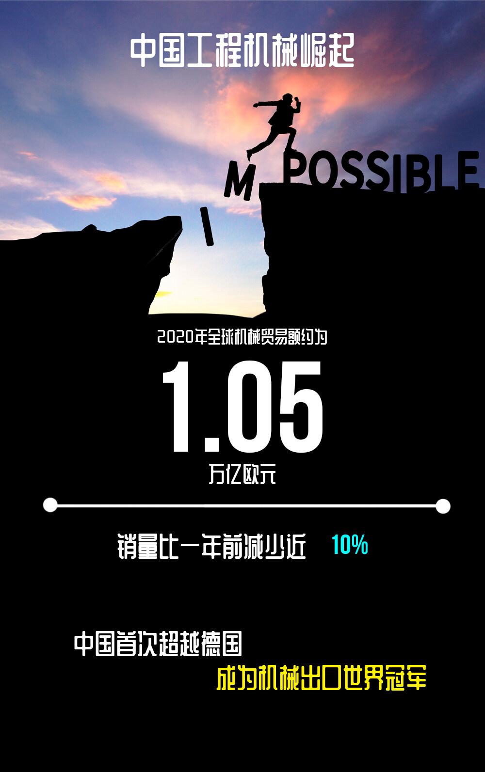 2021年7月7日,德国机械设备制造业联合会(VDMA)公布的一份报告称,受疫情影响,2020年全球机械贸易额约为1.05万亿欧元,销量比一年前减少近10%。中国首次超越德国,成为机械出口世界冠军。