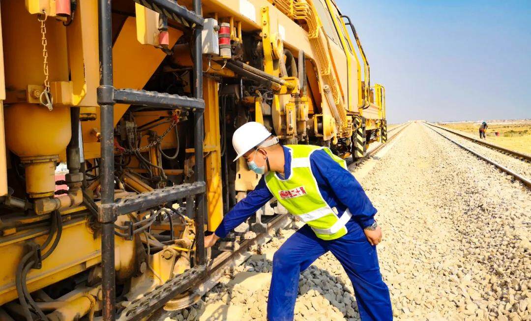 中铁二十局安哥拉国际公司承建的本格拉铁路卢埃纳石油支线,大型捣固车正在加快进度对线路进行最后一次精细整道。为观测捣固车运转情况和整道效果,班组人员用脚步一遍遍丈量着石油支线的长度,以确保达到行车标准。