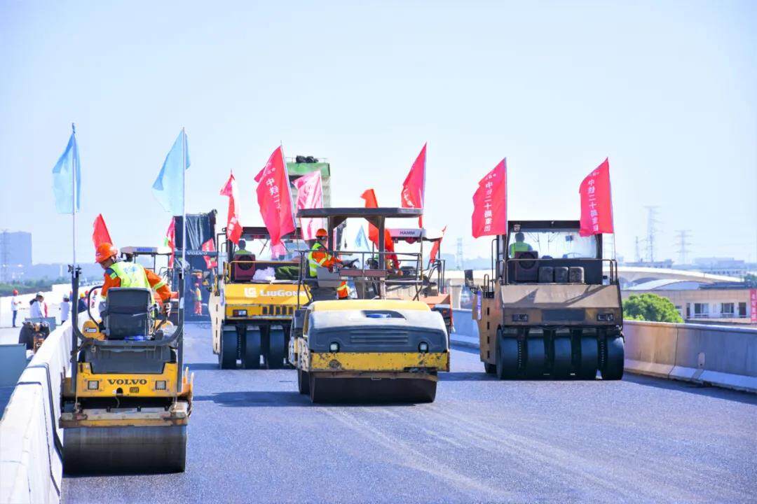 “红船路引领品质工程”,在浙江嘉兴,一公司承担施工的嘉兴市市区快速路环线工程(二期)土建标段,项目在施工过程中积极创新,采用超高强度混凝土施工、装配式挡墙、钢梁拼装滑移、高架OGFC排水降噪沥青路面等新材料、新工艺的应用,提前20天完成420米主线高架桥、769米地面辅道、2条平行匝道施工任务,已经顺利实现通车目标。