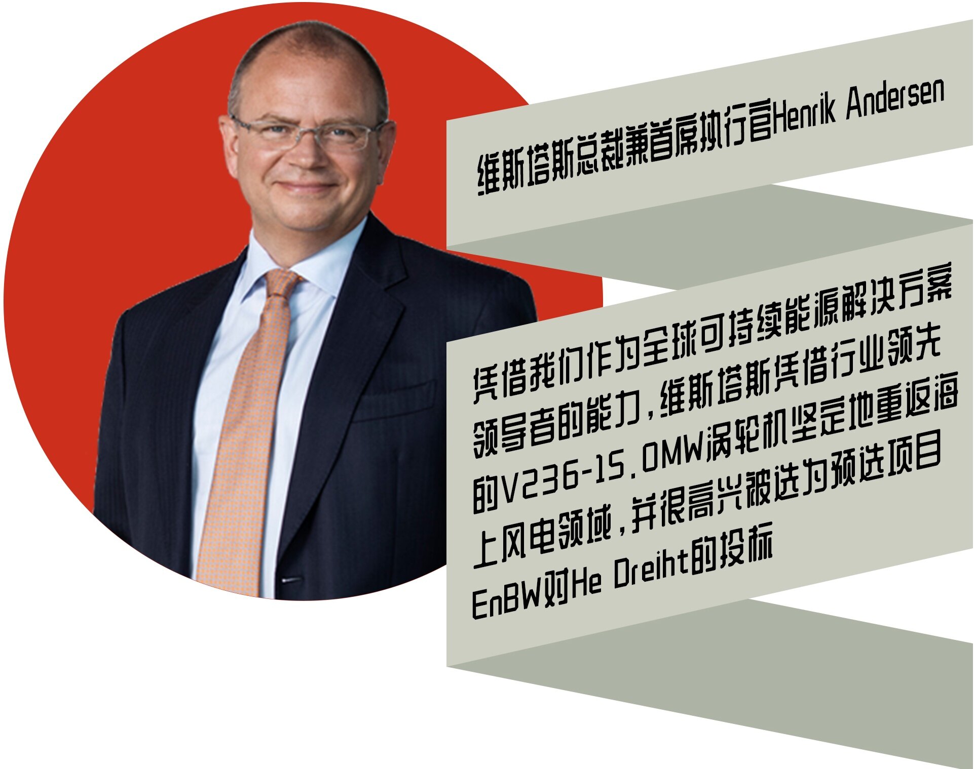 He Dreiht风电场标志着世界上第一个部署新型V236-15.0MW涡轮机的商业项目,该涡轮机仅在五个月前发布。维斯塔斯表示,单台V236-15.0MW风力涡轮机每年可产生80GWh。维斯塔斯总裁兼首席执行官Henrik Andersen表示:“凭借我们作为全球可持续能源解决方案领导者的能力,维斯塔斯凭借行业领先的V236-15.0MW涡轮机坚定地重返海上风电领域,并很高兴被选为预选项目EnBW对He Dreiht的投标。我必须感谢EnBW在过去几个月中为他们的 He Dreiht项目寻找合适的解决方案的密切合作,我们很高兴开始我们在德国沿海海上风电领域的合作伙伴关系。”