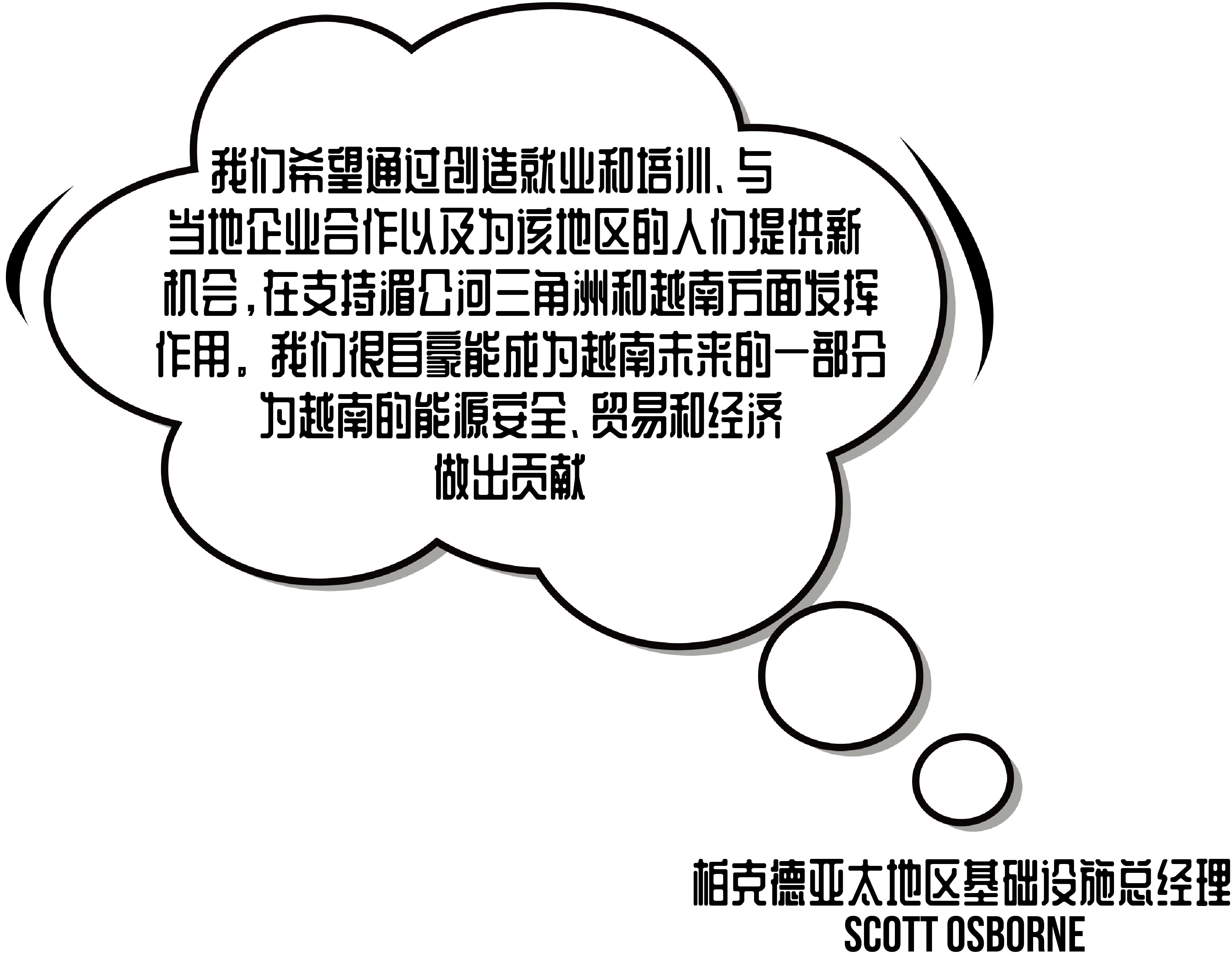 “这座发电厂改变了薄辽省的游戏规则,”柏克德亚太地区基础设施总经理 Scott Osborne 说,“我们希望通过创造就业和培训、与当地企业合作以及为该地区的人们提供新机会,在支持湄公河三角洲和越南方面发挥作用。我们很自豪能成为越南未来的一部分,为越南的能源安全、贸易和经济做出贡献。”