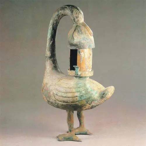 雁腹内可盛清水,灯烟经雁颈溶入水中,可以减少油烟污染。现在看来,古人在那个时候就已经有环保意识了。