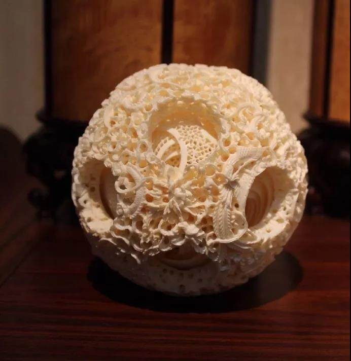 据悉,这传统的象牙编织方法已失传,现世仅存三件。