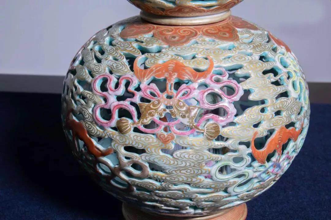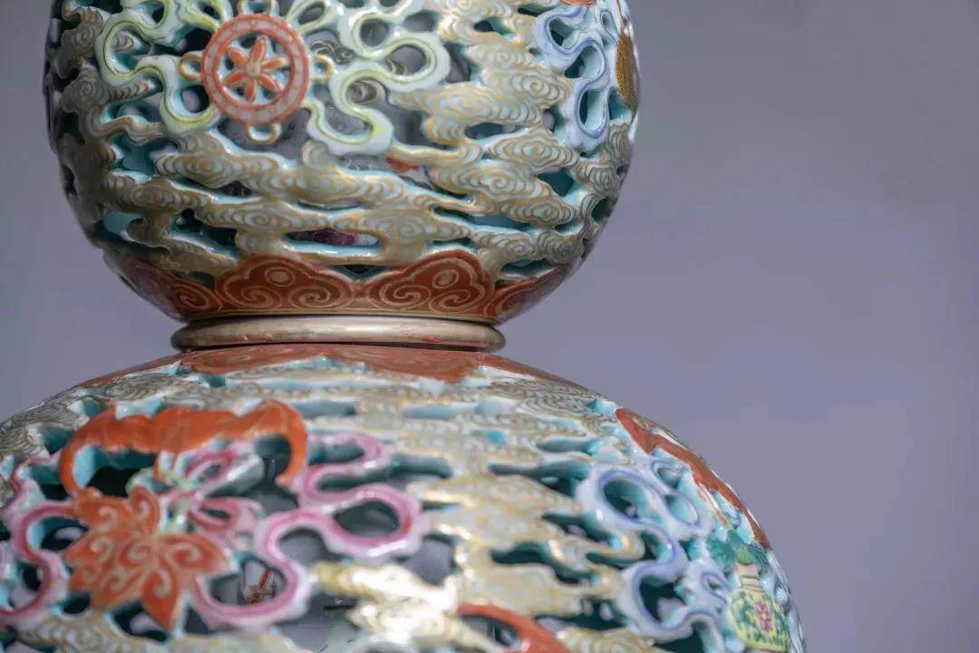 清乾隆,洋彩透云蝠内八仙贺寿玲珑转心瓶