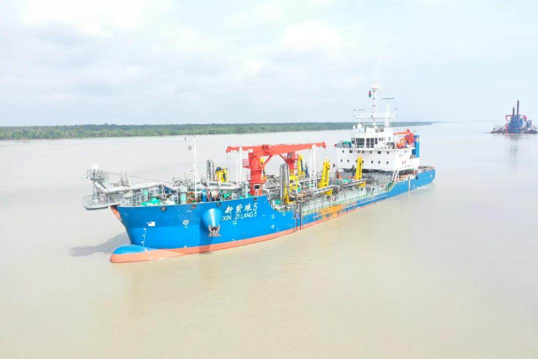 On July 7th, Xinzilang No. 5 arrived at the site of the Mongla Port dredging project and began operations. The ship is an infinite cruise trail suction dredger. Since June 17th, it went upstream from Jiangsu to “join the war” in Bangladesh. The first show after completion. In addition, the “Xin Haixu” and “Xin Hai Teng”, one of the world’s largest non-self-propelled cutter suction dredgers, also arrived on site in the first half of 2021. So far, the second phase of the Mongla Port Dredging Project has ushered in three dredging vessels. A sharp weapon, the daily output of dredging can be as high as 80,000 cubic meters, which is equivalent to the loading capacity of 8,000 ordinary trucks.